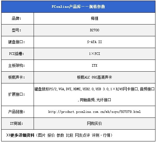 集成雙核四線程CPU,梅捷D2700熱賣699