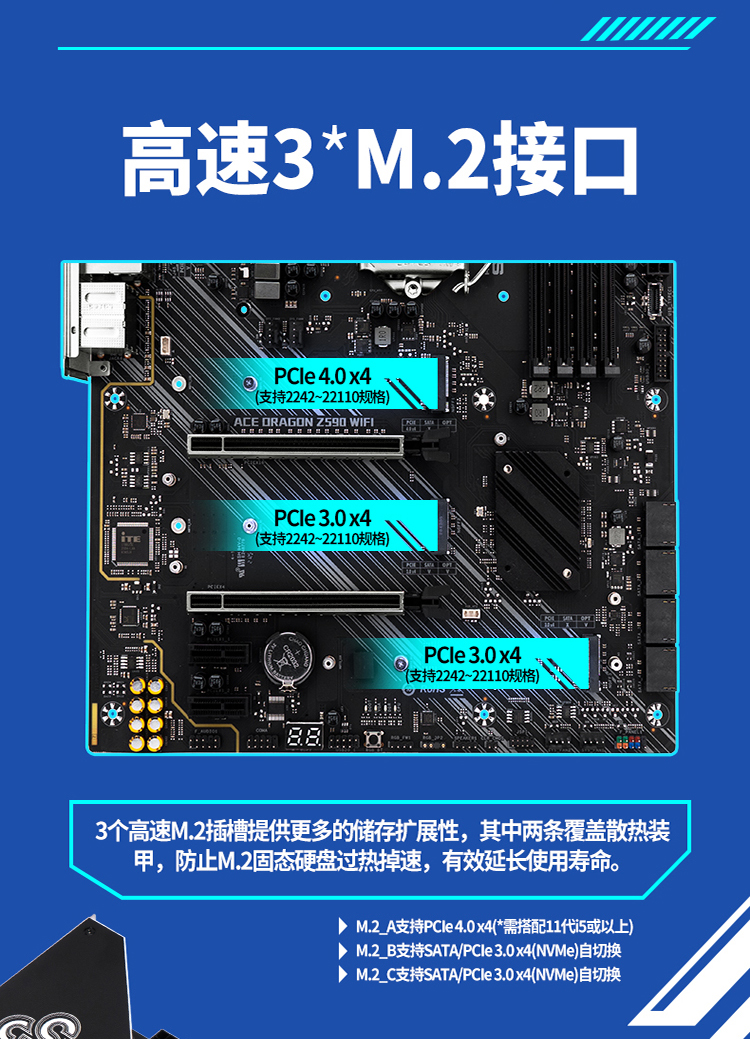 - 階梯式合金散熱裝甲,霧黑PCB,全速M.2插槽