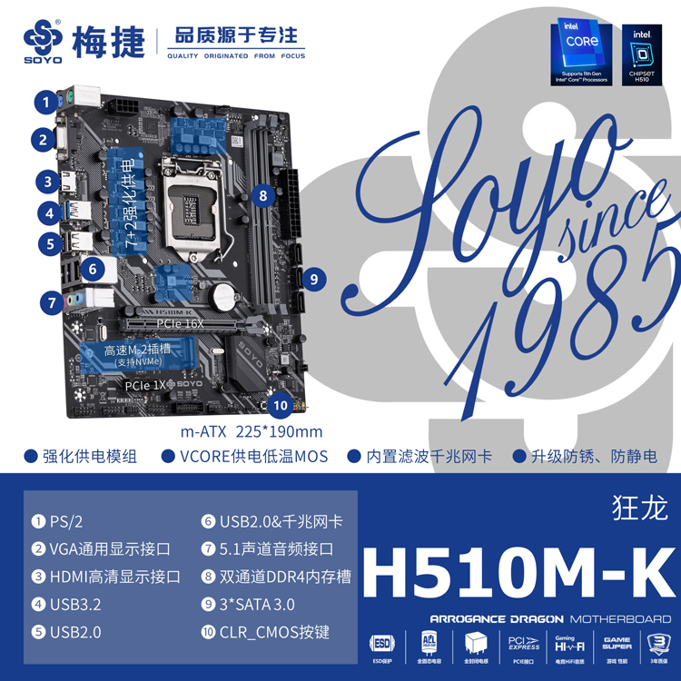 - 2×USB3.2 Gen1;4×USB2.0接口