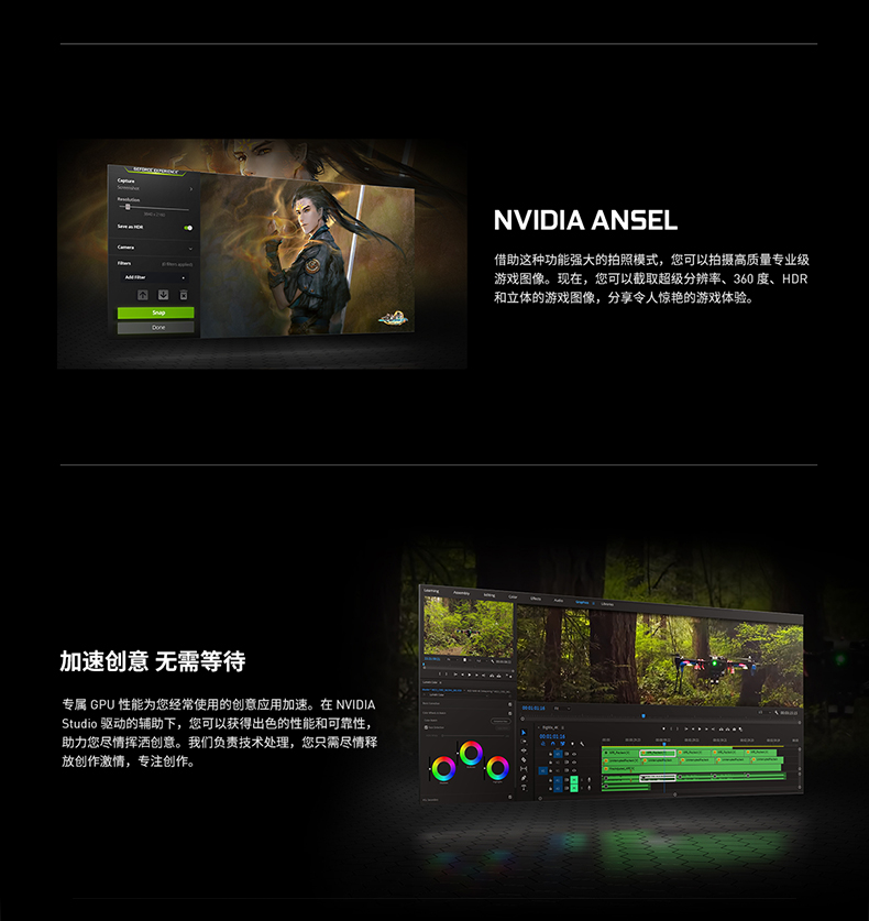 - 支持Simultaneous Multi-ProjectionVR圖像矯正技術(shù),VRWorks Audio虛擬現(xiàn)實音頻技術(shù),Ansel截圖功能,PhysX物理加速技術(shù),NVIDIA CUDA,PureVideo HD高清硬件解碼,動態(tài)超級分辨率,MFAA,GeForce 3D Vision,GameWorks™,G-Sync™-Ready,GameStream™-Ready,GeForce ShadowPlay™,GPU Boost™